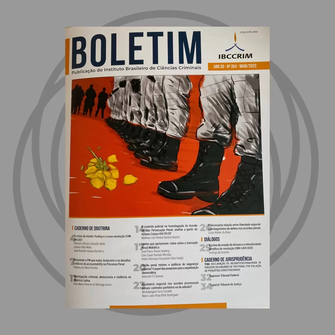 A advogada Luísa Walter da Rosa teve um artigo de sua autoria publicado no Boletim do Instituto Brasileiro de Ciências Criminais (IBCCRIM), nesta edição do mês de maio.