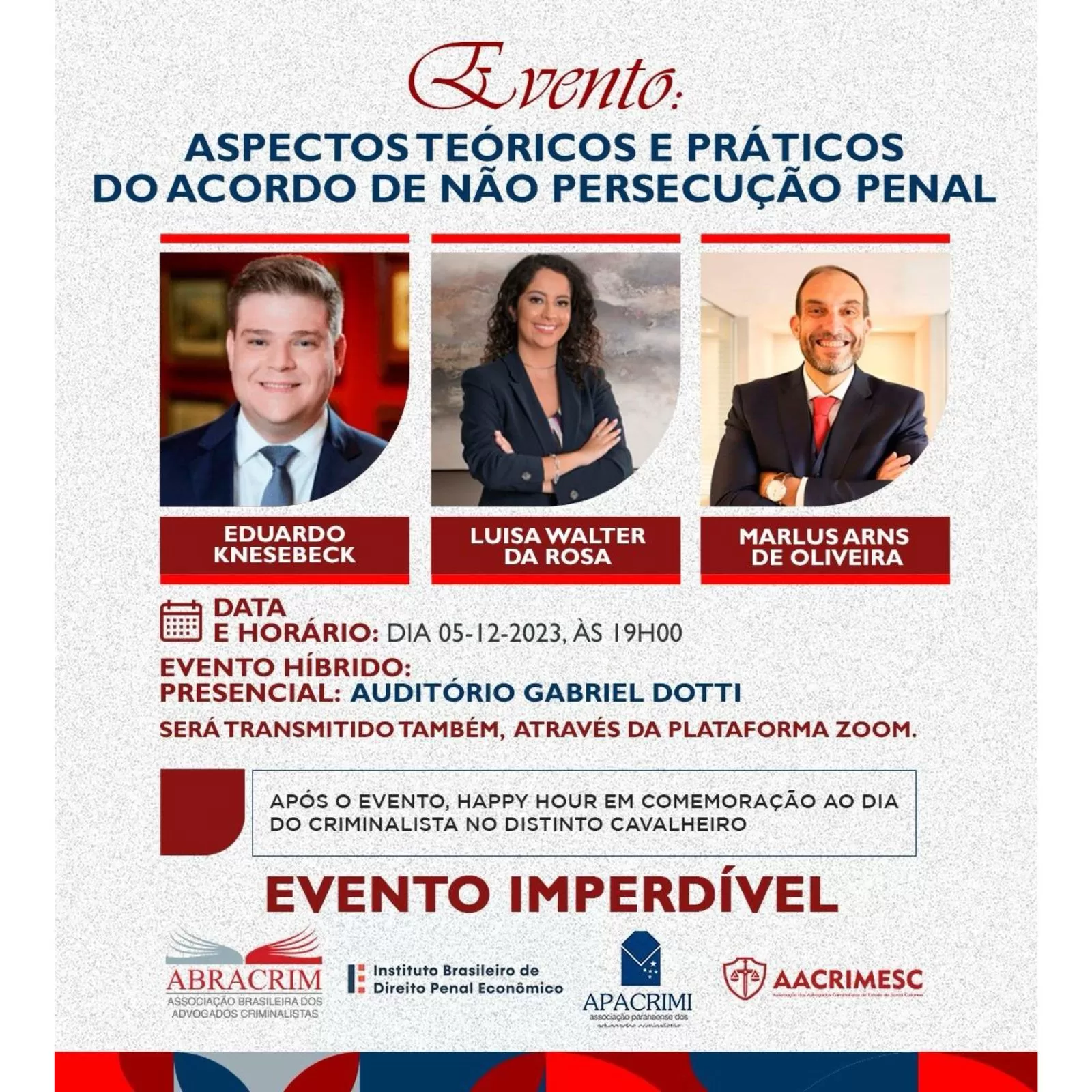 A advogada Luísa Walter da Rosa palestrou no evento híbrido promovido pelo Instituto de Direito Penal Econômico (IBDPE), pela ABRACRIM, APACRIMI e AACRIMESC, no dia 05/12/2023.