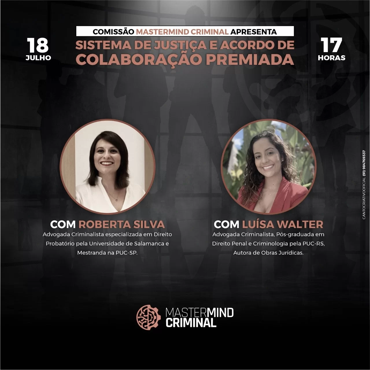 No dia 18 de julho de 2020, a advogada Luísa Walter da Rosa foi convidada a participar da reunião da Comissão de Direito Penal Econômico do Mindjus Criminal, para falar sobre colaboração premiada.